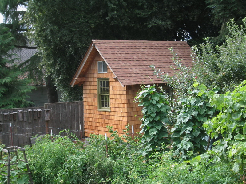 Here are some photos of the shed after it got it's siding of cedar shingles in July 2008. It is now ready for use..